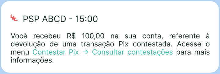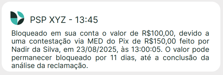 - PIX_INFRACTION_BALANCE_WAS_LOCKED - Indica que o saldo do cliente foi bloqueada enquanto a análise da contestação está em andamento.