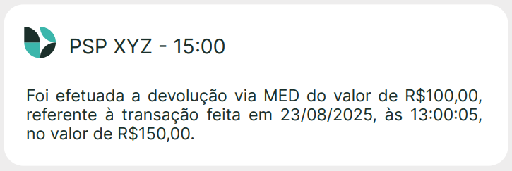- PIX_REFUND_WAS_RECEIVED - Indica que um valor de devolução foi recebido.