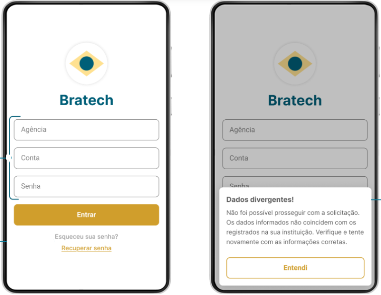 - Disponibilizar dentro do seu aplicativo uma tela de login específica para o fluxo de consentimento (sem derivação para criação de conta).